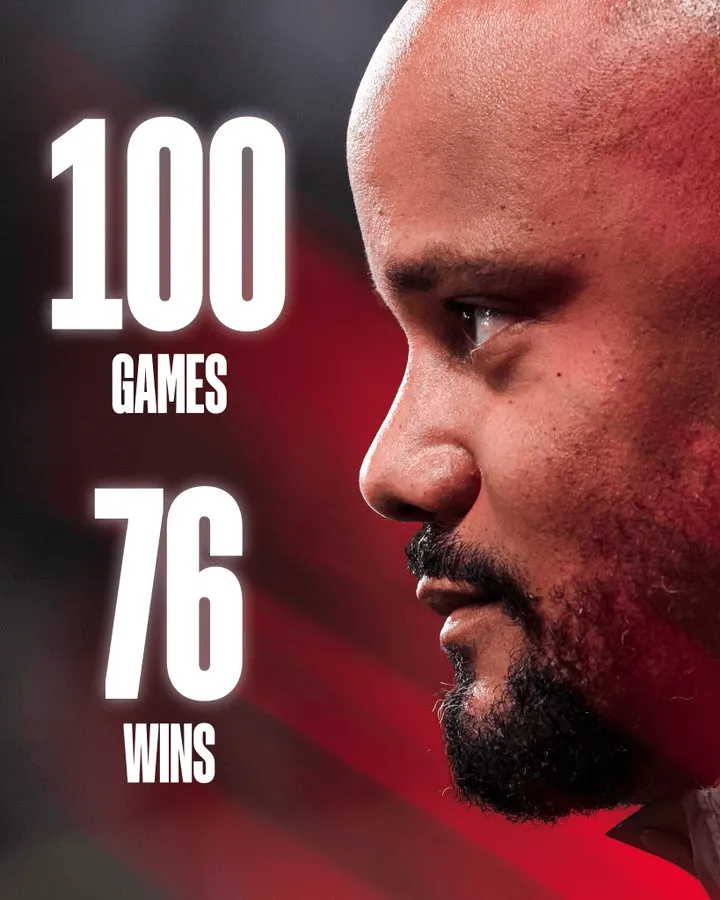 这是孔帕尼执教拜仁慕尼黑的第100场比赛,他一共带队取得了76场胜利。赛后,拜仁官方发布海报纪念了这一时刻:一个特别的夜晚,庆祝这个里程碑——而这仅仅是个开始!✨
